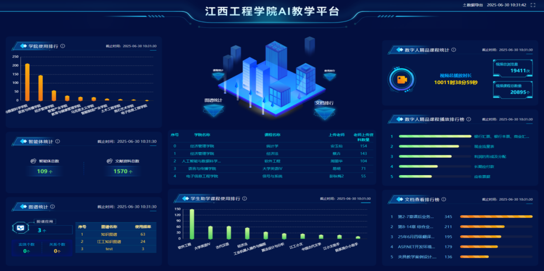 雄厚算力支撑,攻克技术难题。为贯彻落实全国教育大会精神,深入实施国家教育数字化战略行动,响应“推动数据驱动的数字教育治理新体系整体效能提升”“探索‘人工智能+教育’应用场景新范式”“建立基于大数据和人工智能支持的教育评价机制”等核心要求,江西工程学院启动平台建设工作,旨在解决通用大模型在教学场景中知识幻觉、答案泛化、专业深度不足等痛点。