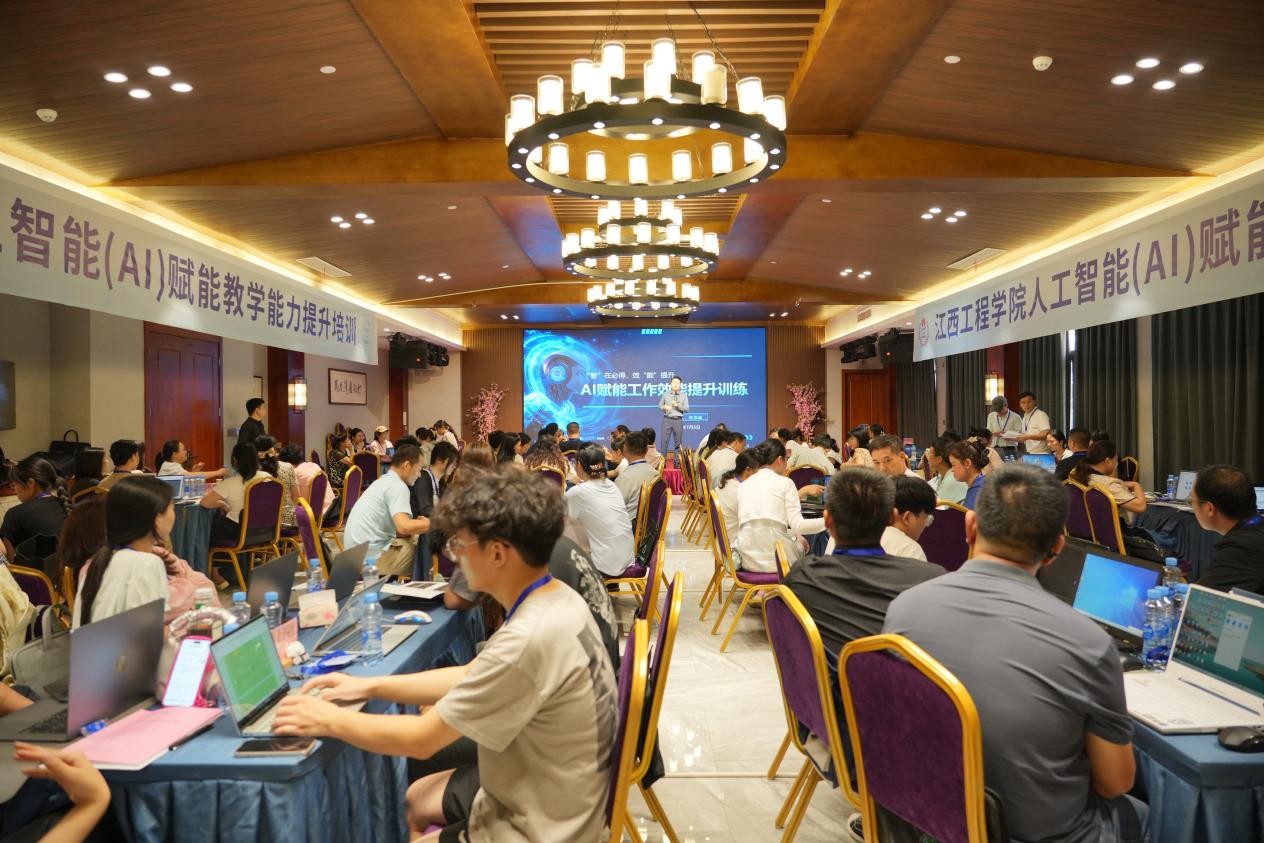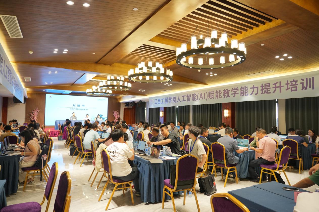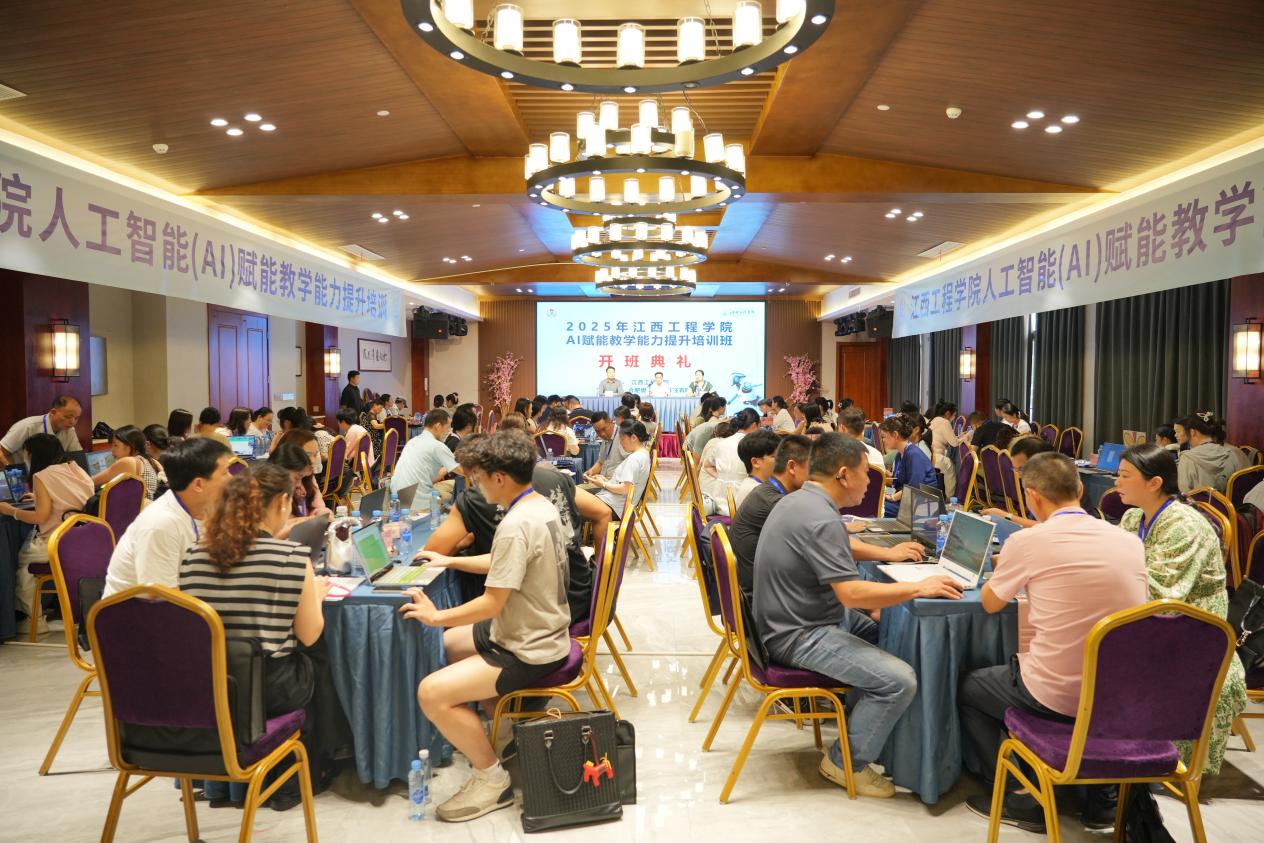 为推动教育教学与现代科技深度融合,全面提升教师人工智能领域专业素养与教学能力,7月4日,江西工程学院“人工智能(AI)赋能教育教学能力提升培训”开班仪式在新余市仙女湖凤凰湾培训基地隆重举行。校党委委员、副校长刘德华出席仪式并讲话,首批参训的专任教师及教学管理人员共计100余人参加。开班仪式由教务处处长康梅兰主持。