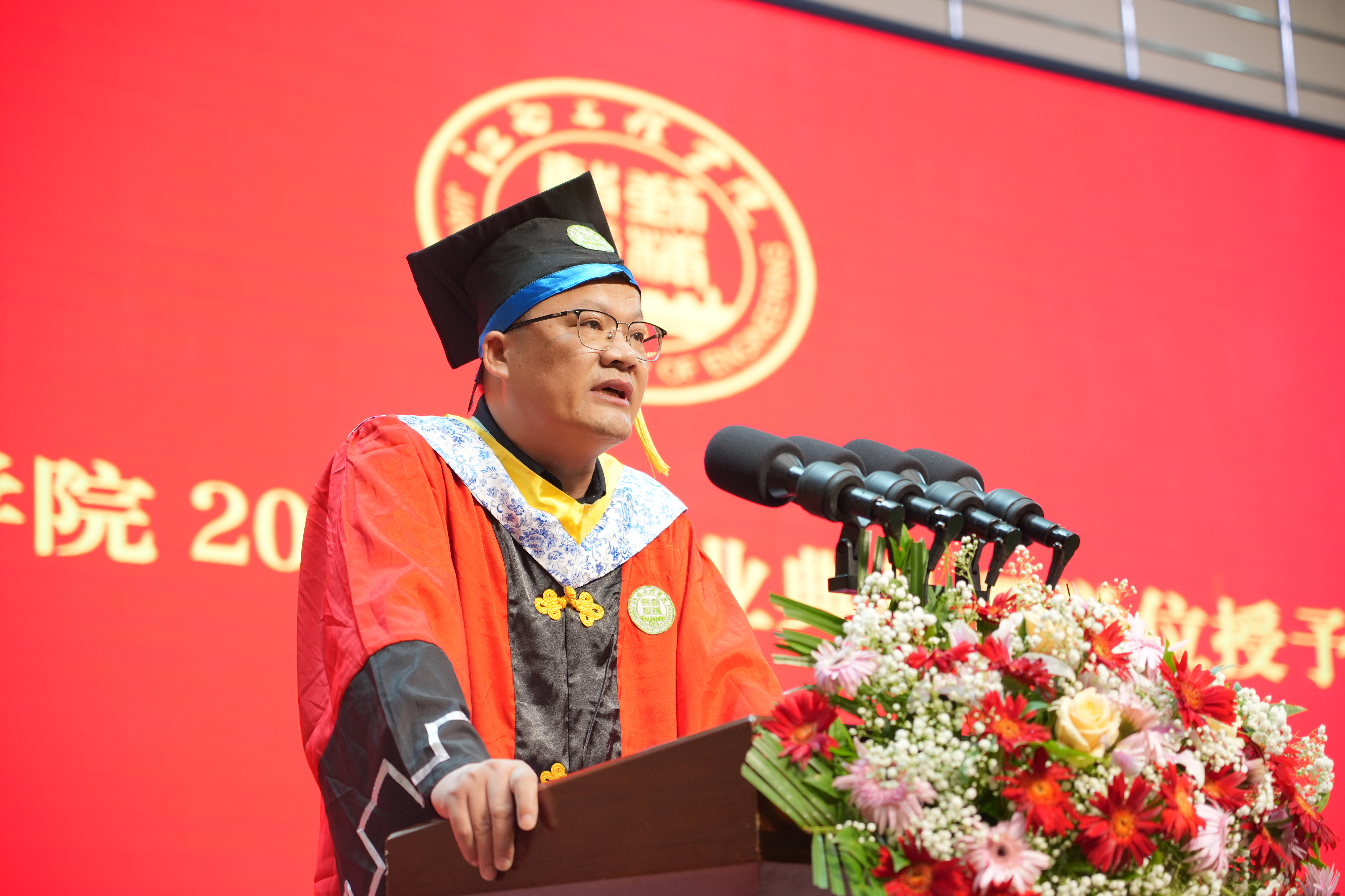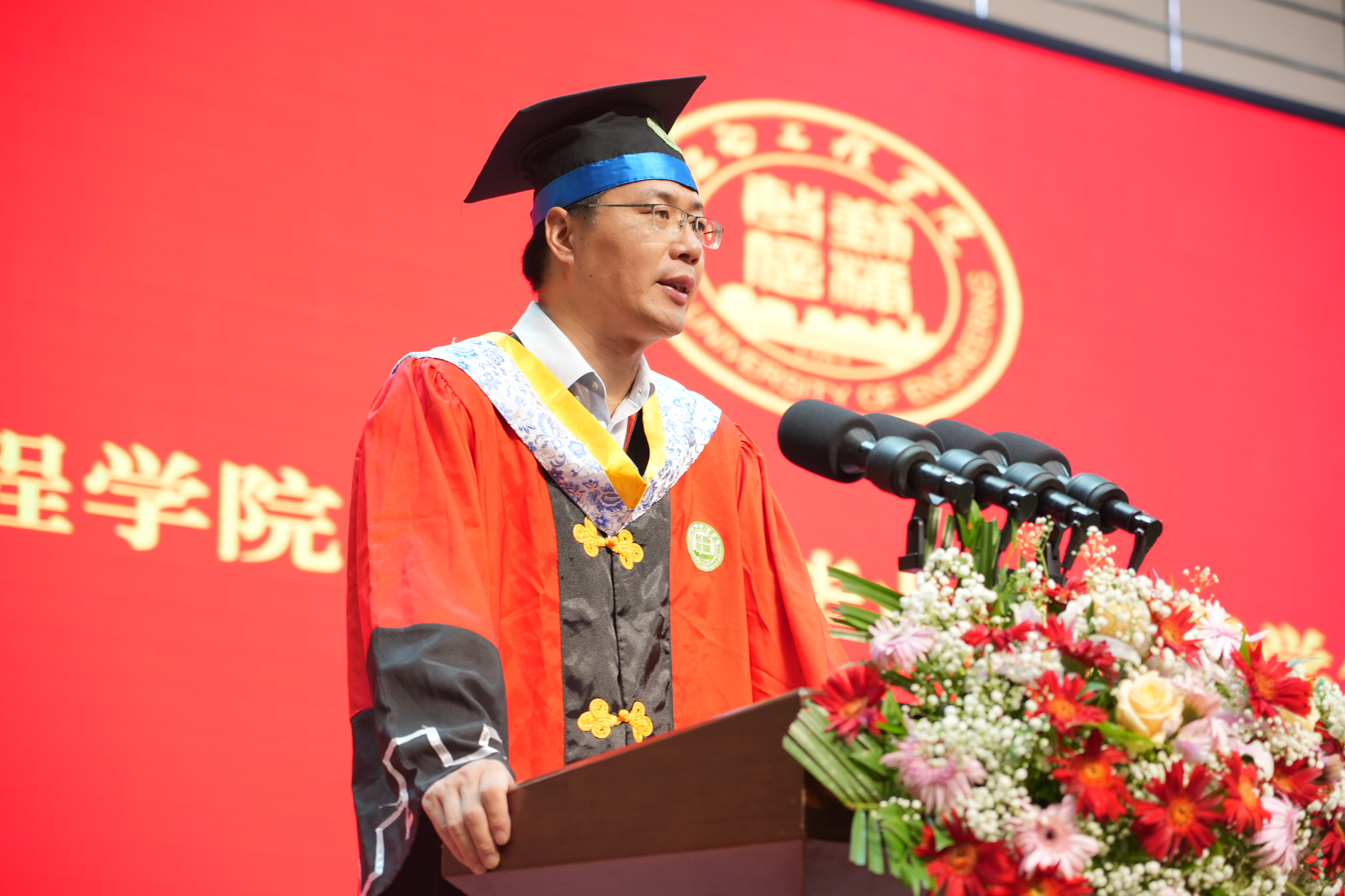 典礼在雄壮的国歌声中拉开序幕。典礼上,刘新跃深情地发表了题为《信念照亮征程 学以致用成就璀璨人生》的讲话。他首先代表学校,向圆满完成学业的3911名毕业生表示衷心的祝贺,向悉心教导同学们的老师、辛勤养育同学们的父母和关心帮助同学们成长的亲友,致以崇高的敬意和诚挚的感谢。