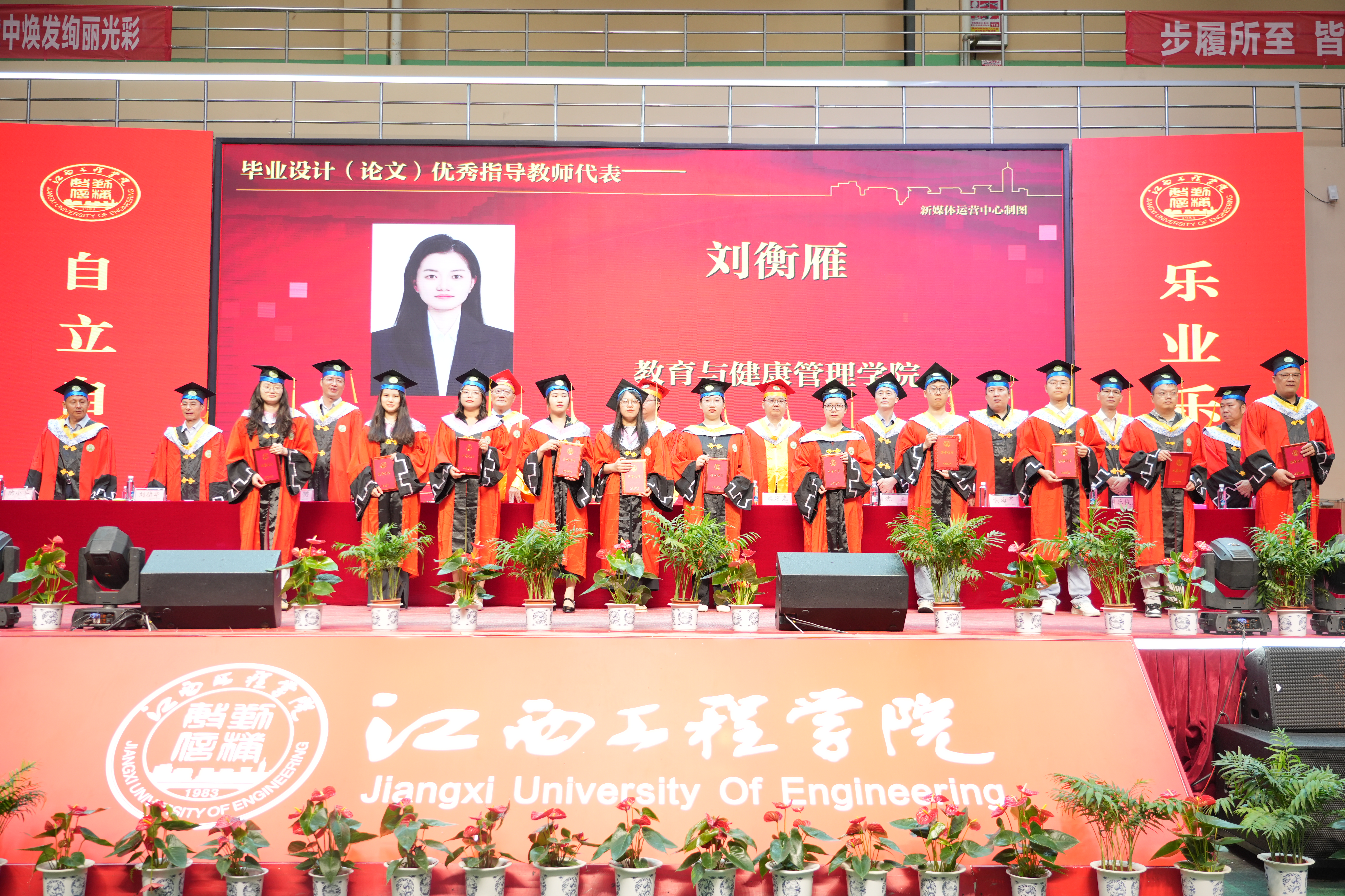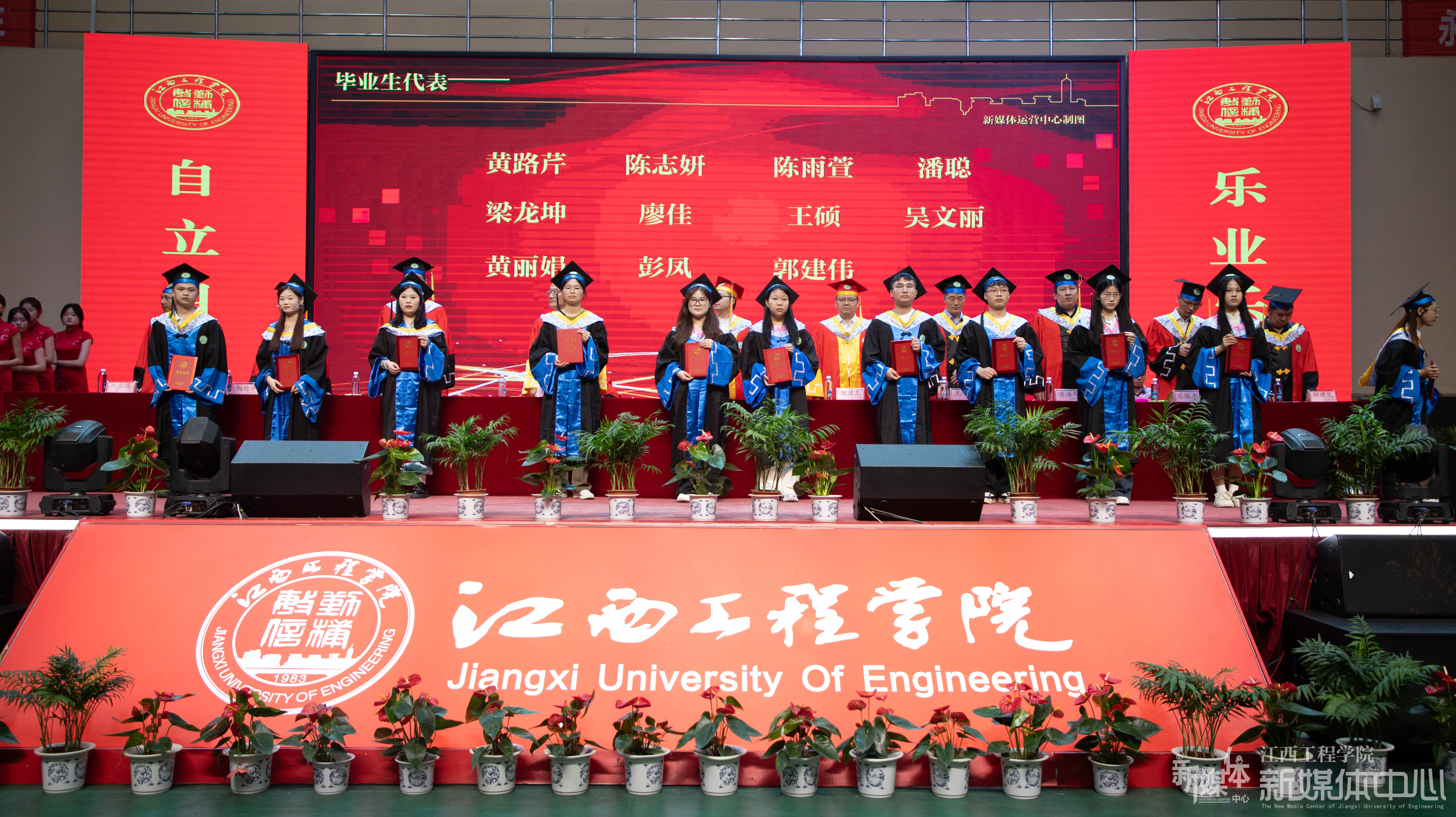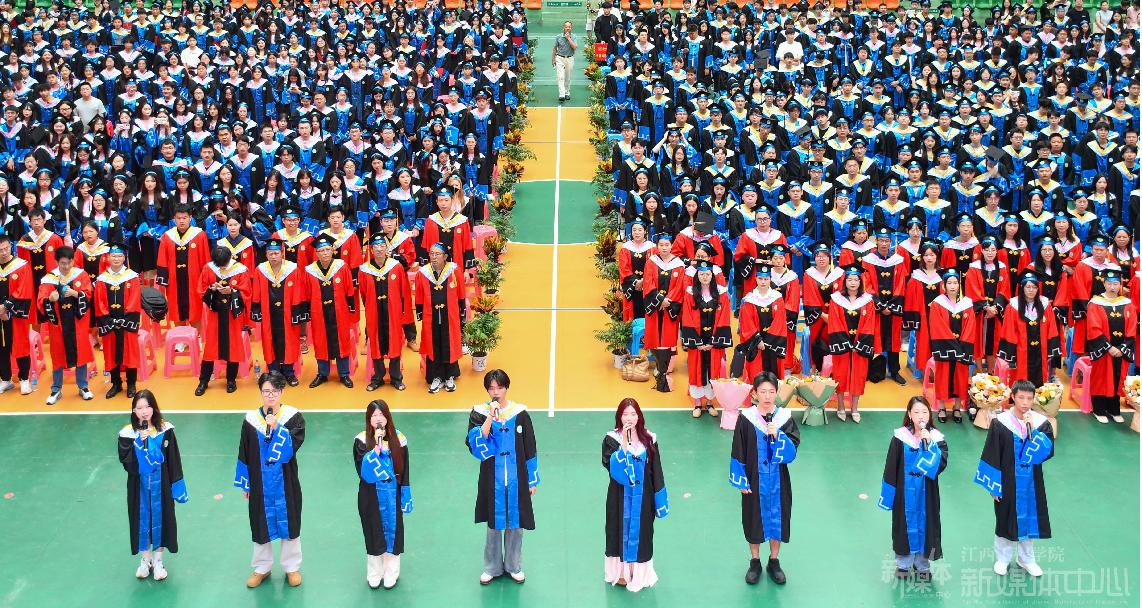 “天工开物,抱石故里,齐聚今朝才俊……”在场师生们共同唱响《弘我学校精神》,饱含深深“江工情”的歌声在典礼现场久久回荡、隽永流长。