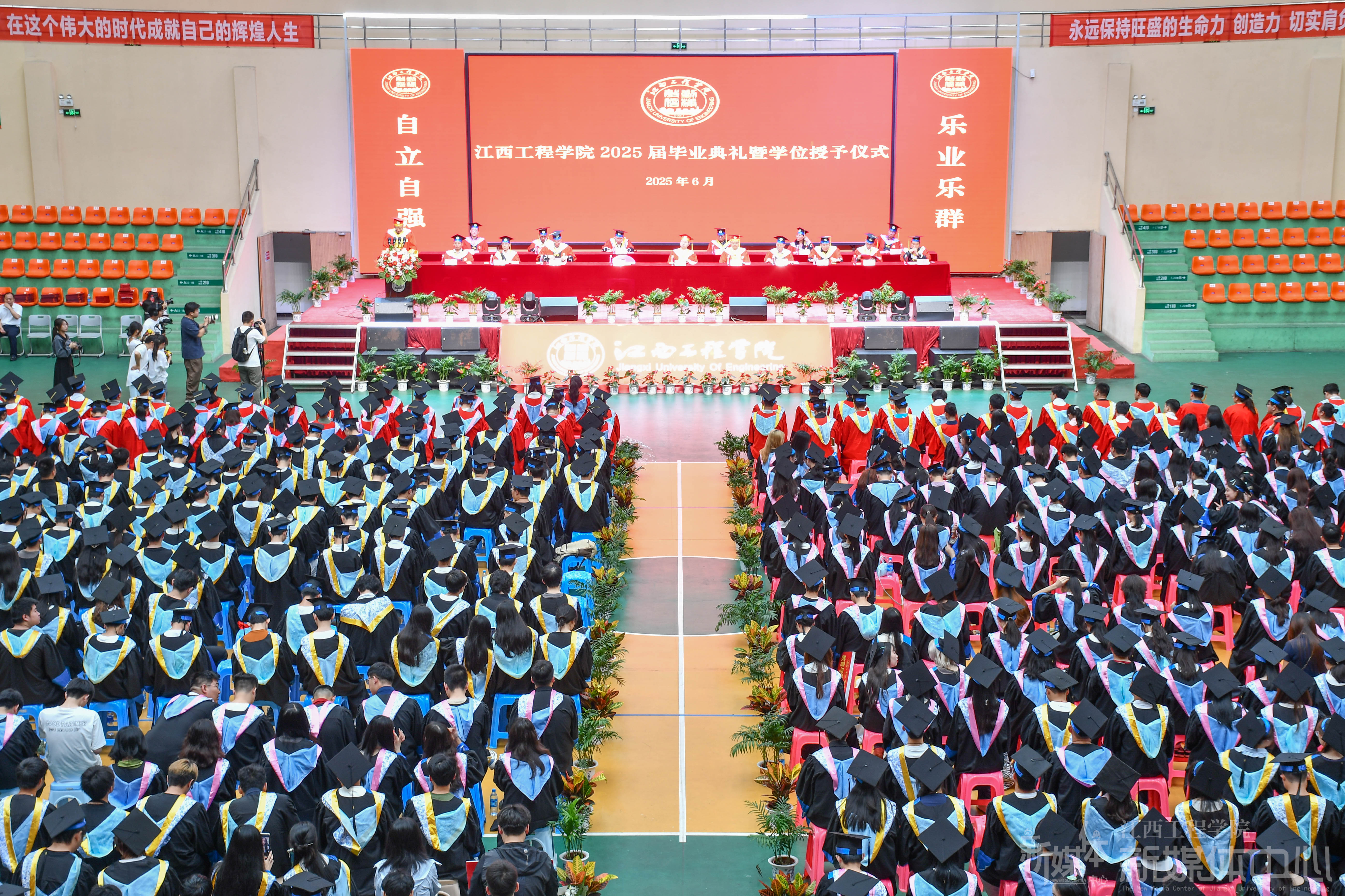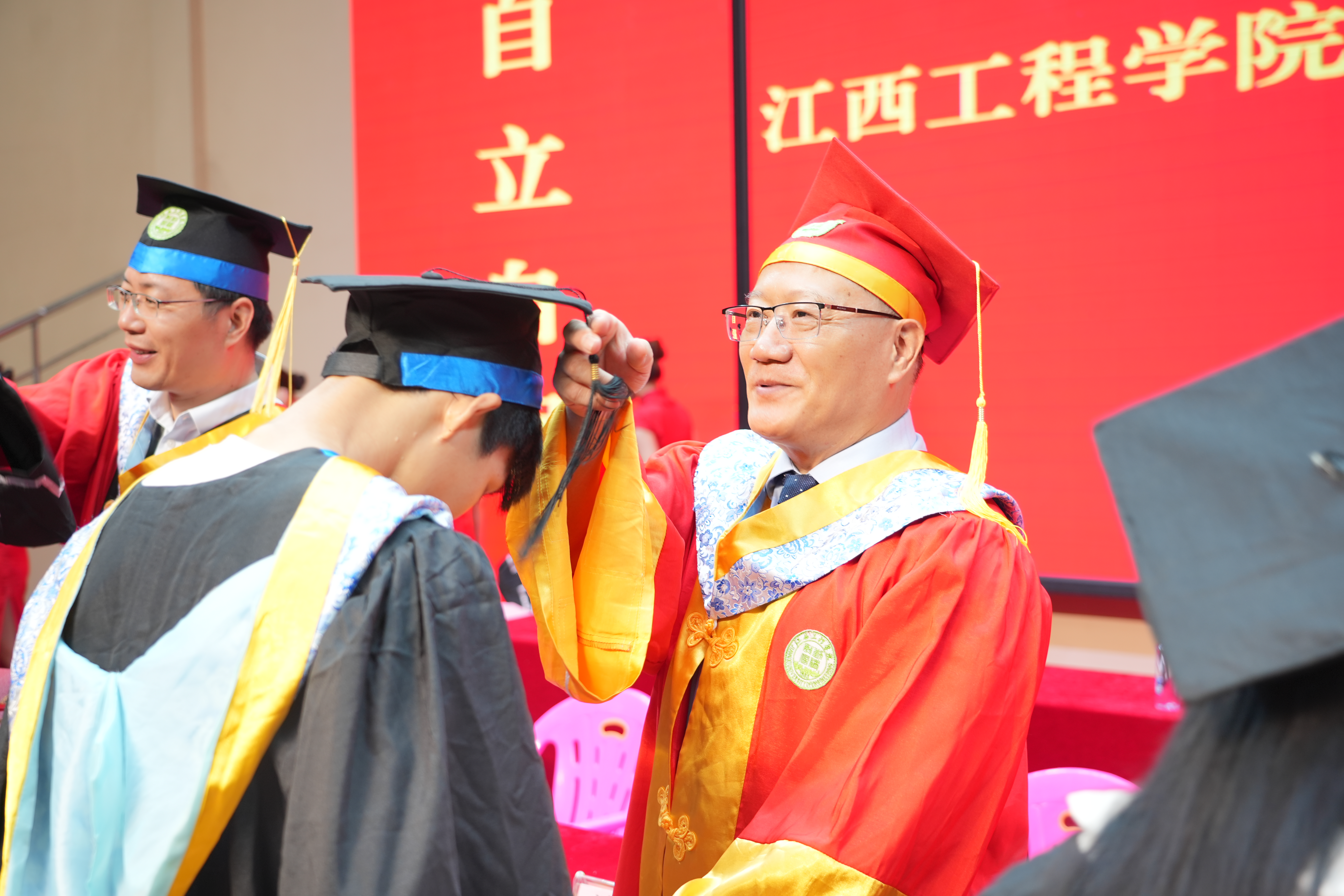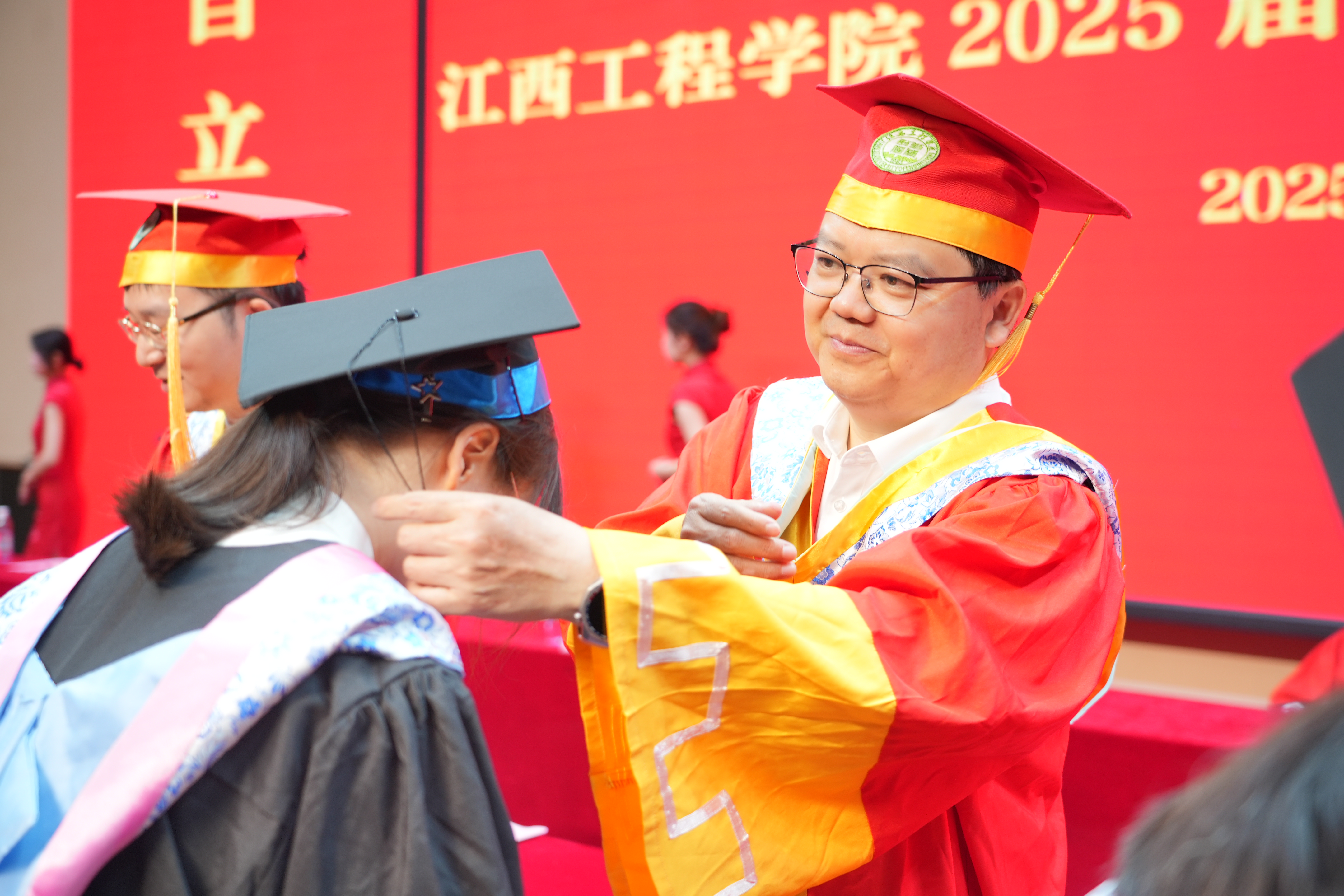 刘新跃指出,四年来,你们不仅收获知识技能与健全人格,更传承了江工42年积淀的“勤朴敏信”校训与“自立自强、乐业乐群”学校精神。学校内涵建设步履坚实,2025年位列ABC中国民办大学江西第4名、全国民办本科竞争力第55名;连续9年参展深圳高交会;建成算力中心与鸿蒙系统实训中心,开发全国首个智慧校园鸿蒙版APP;入选工信部工业信息安全人才培养单位与麒麟工坊实训基地;“电子信息工程”等2个专业获批省级一流本科建设点,获2项省级教学成果奖、5门省级一流课程等多项成果。同时,学校2025届毕业生中有23人成为中共预备党员,154人考研“上岸”,再次书写了江工学子考入厦门大学、南京信息工程大学等一批“双一流”知名高校的神话;在“互联网+”大学生创新创业大赛、全省大学生电子设计大赛等重大赛事中屡获佳绩;积极参与社会实践与志愿服务,以文艺社团活动诠释校园文化。这些青春印记已成为母校与你们共有的精神财富。