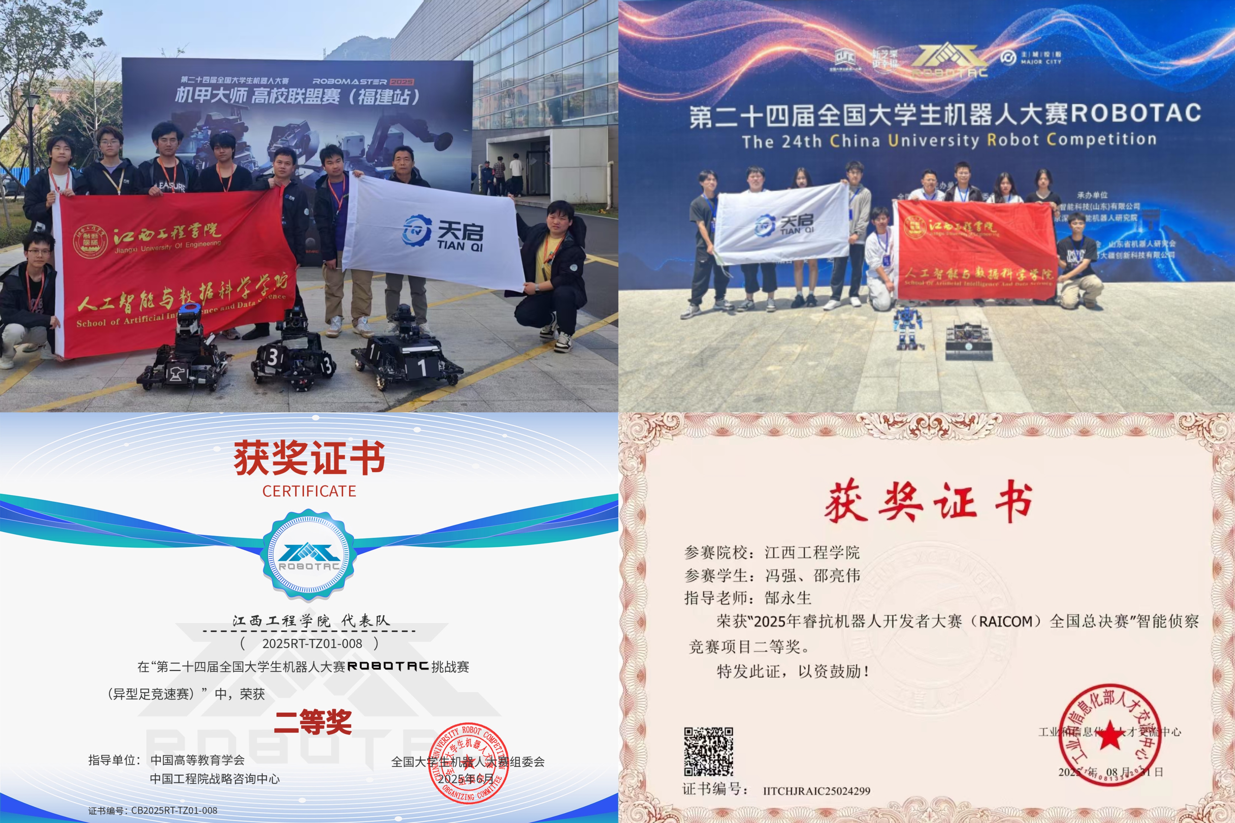 当RoboMaster机甲大师的轰鸣声在全国大学生机器人赛场回荡,当ROBOTAC异形足机器人的竞速身影划破赛场,当睿抗(RAICOM)机器人开发者的算法模型精准定位动态目标——2025年,江西工程学院人工智能与数据科学学院负责人巢喜剑表示,学院“机器人军团”在全国乃至全球顶级赛事中屡创佳绩,以四项大赛的突破性战果,在科技竞技舞台上刻下了闪亮的“江工印记”。