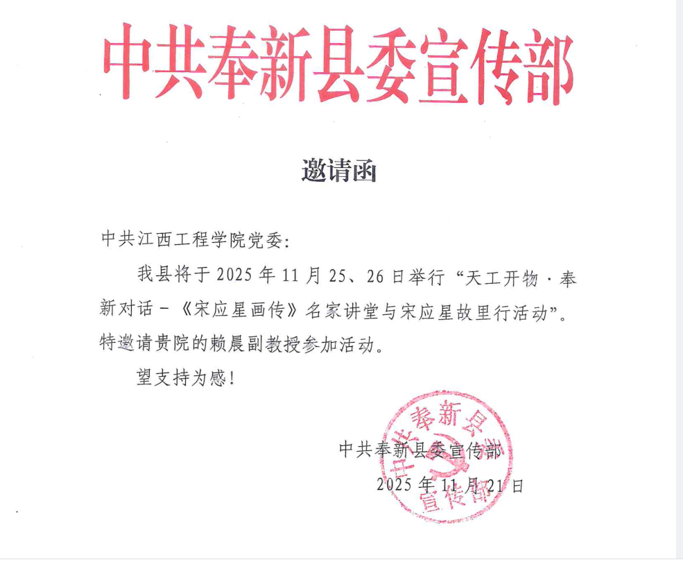 2025年11月28日,新余市社会科学界联合会、江西省天工开物文化研究会联合公示2025年度新余市天工开物文化专项课题中标结果,学校赖晨副教授主持的《新余是<天工开物>成书地研究》成功入选。此次学校与江西师范大学等省内高校同台跻身4个中标课题组之列,不仅印证了学校在天工文化研究领域的深厚积淀,更彰显了应用型高校在特色学术研究中的强劲实力。