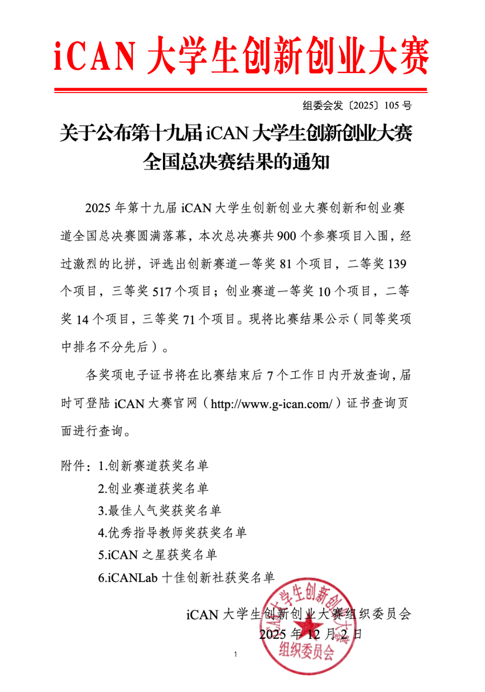本届大赛由中国创造学会主办。作为国内最具影响力的青年创新赛事之一,2025年iCAN大赛分为校园赛、区域赛和全国总决赛三级赛程,设创新、创业与挑战三大赛道,22个分赛区,报名人数再创新高,共计报名参赛项目36521个、学生139199名、覆盖高校1500余所,最终有900支精英团队(含创新赛道800支、创业赛道100支)成功突围全国总决赛。