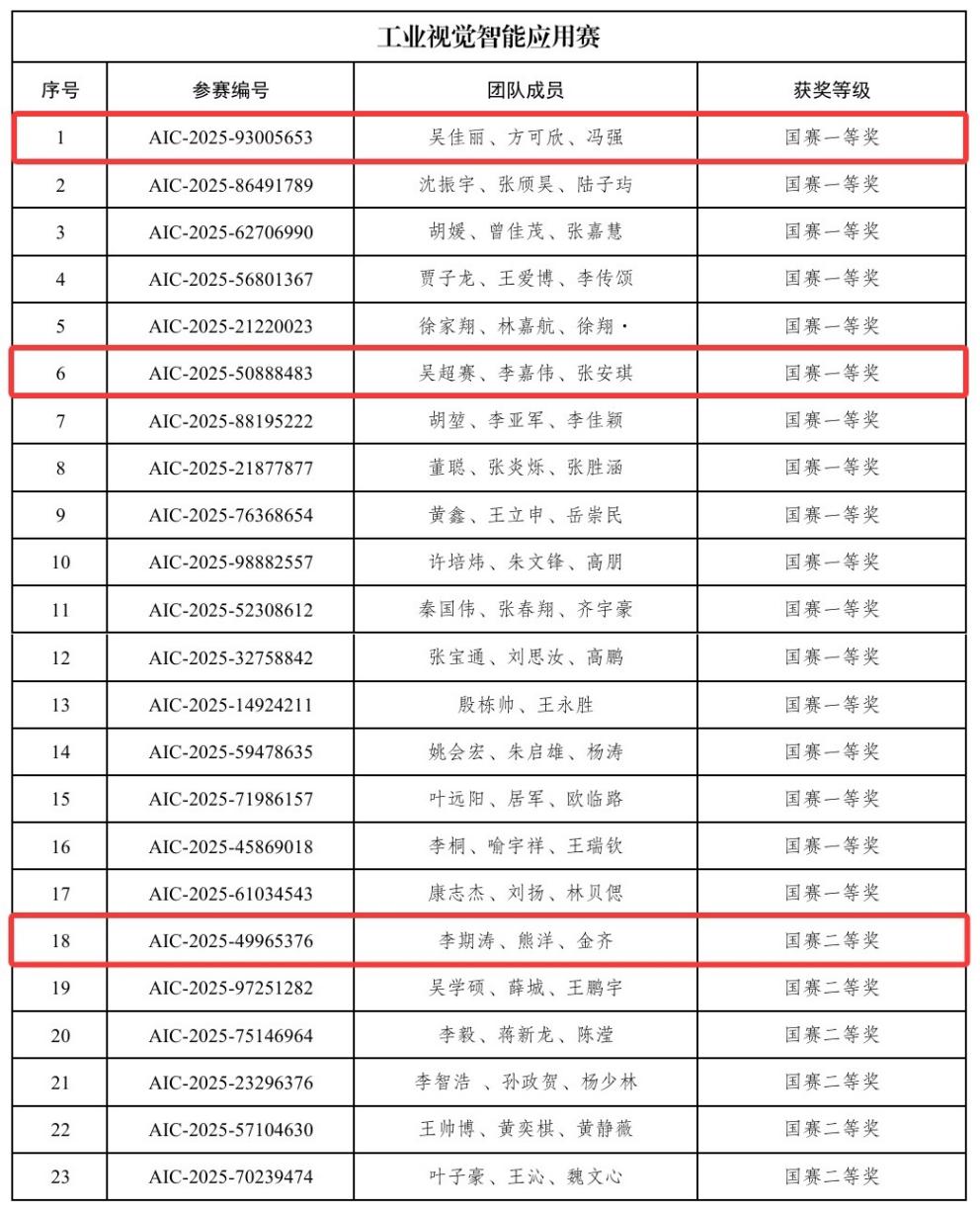 2025年12月16日,第七届全球校园人工智能算法精英大赛工业视觉赛道全国总决赛在河北邯郸举行,赛项汇聚了华中科技大学、南京大学、中南大学等全国高校115支队伍同台竞技。我校人工智能与数据科学学院机器人工程专业的三支学生队伍,凭借专业功底、稳定的临场发挥与创新性的技术方案,一举斩获全国一等奖2项(位列该赛道全国第一),全国二等奖1项。