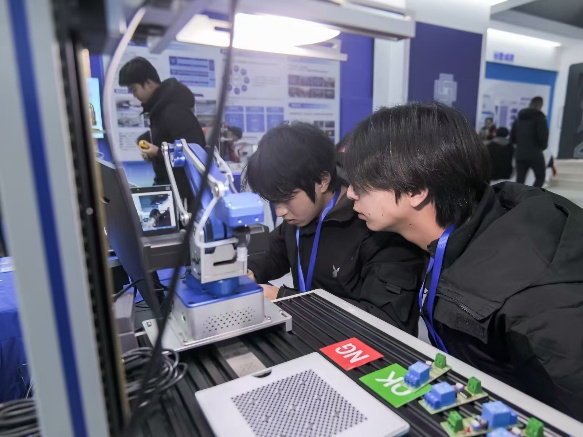 全球校园人工智能算法精英大赛是教育部84项赛事之一,自2019年创办以来已连续举办六届,累计吸引26个国家、1000多所高校的2.4万支队伍、3.7万余名学生参赛,本次晋级总决赛来自全国高校的115支队伍、近千名选手参与,集中呈现了从算法架构设计、模型优化训练到工程化落地实施的全链条技术能力,力求解决工业场景中实时质检、复杂缺陷检测等现实难题。比赛项目不仅考验着参赛团队的图像采集、图像处理、逻辑判断、结果交互、界面设计等多方面技术能力,更注重团队协作与临场应变能力,为学生提供了一个全方位展示创新思维和实践能力的舞台。